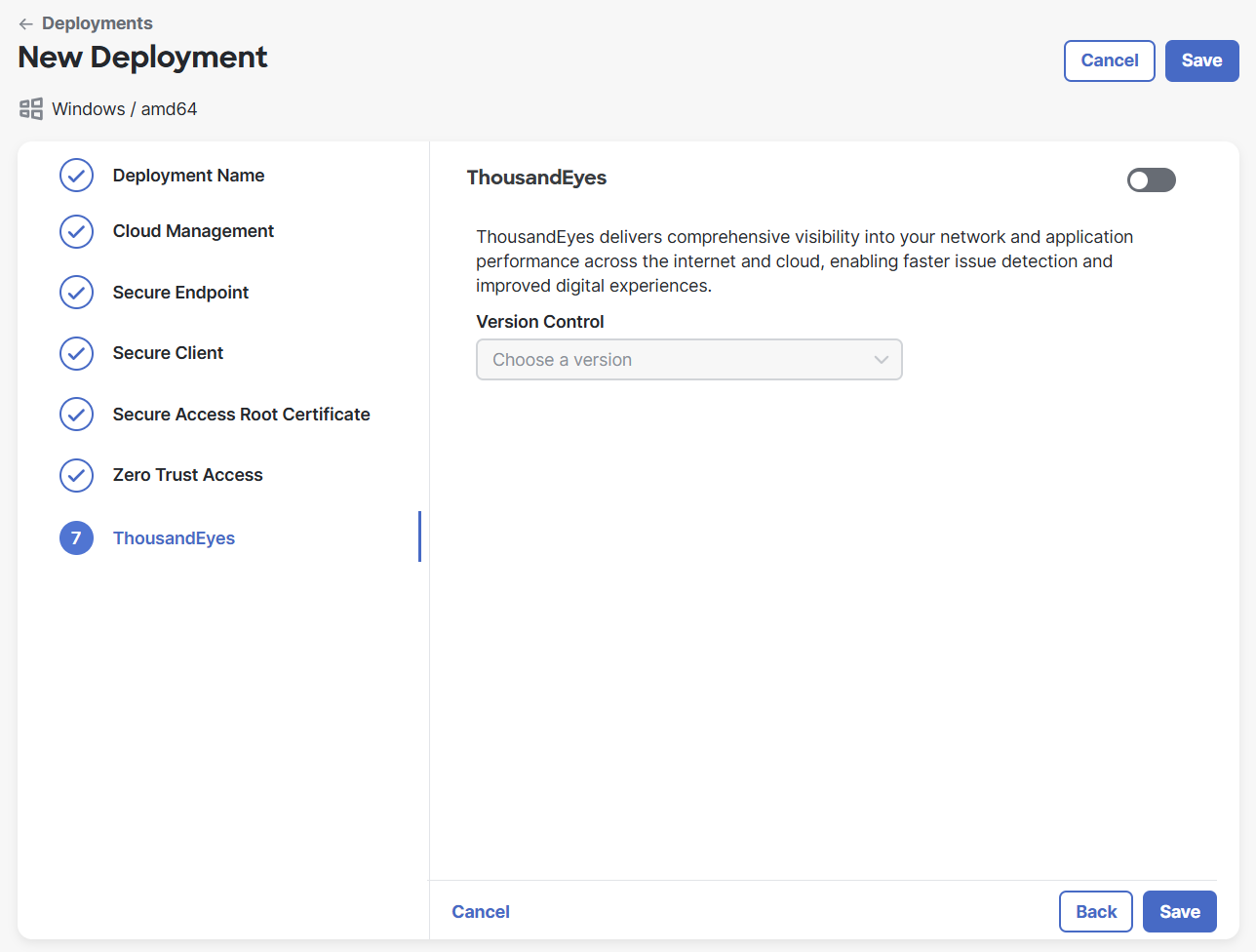 Choose the version for the ThousandEyes module you want to deploy from the drop-down list.